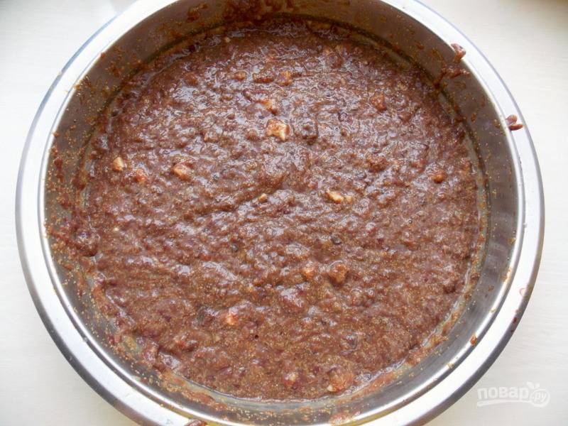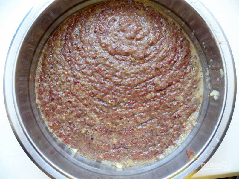 Прокрутите дважды в мясорубке с мелкой решеткой.