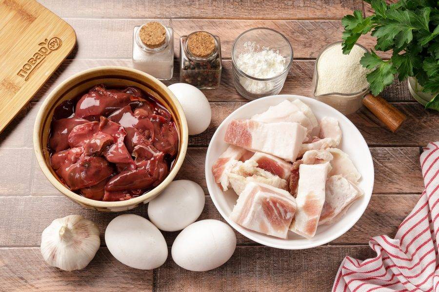 Подготовьте все ингредиенты по списку. У меня куриная печень, но можно взять любую другую. Печень промойте и обсушите, если необходимо, удалите все плёночки. Куриную печень обычно достаточно лишь промыть.