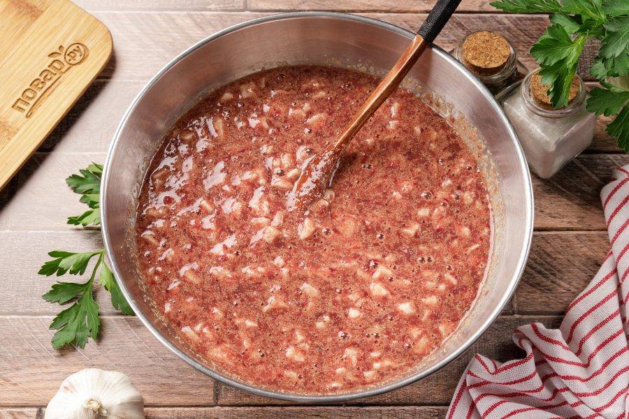 Пропустите печень через мясорубку.