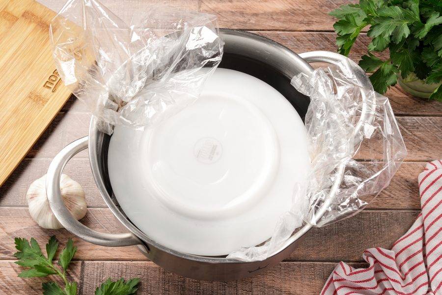 Опустите заготовки в кастрюлю с холодной водой. Вода должна почти полностью покрывать их.
