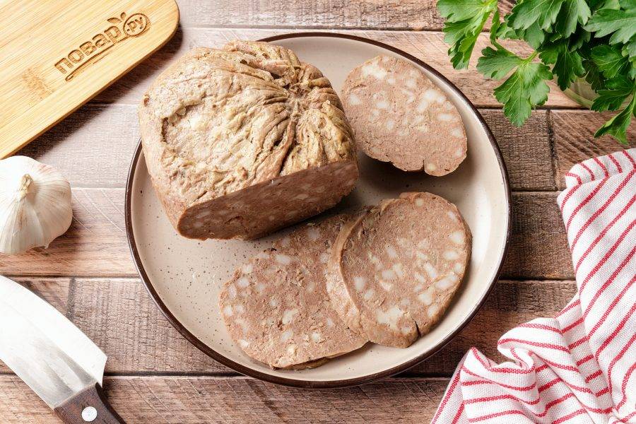 Домашняя печёночная колбаса в пакете готова. Сначала оставьте колбасу остывать при комнатной температуре, не вскрывая упаковку, а затем уберите на пару часов в холодильник. Колбаса получается невероятно вкусная — плотная по консистенции, нежная на вкус, легко режется.