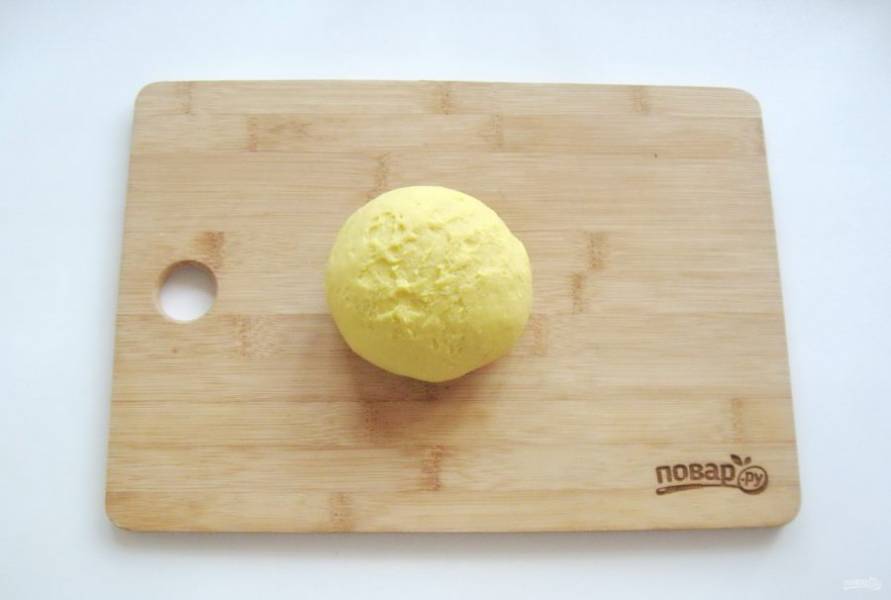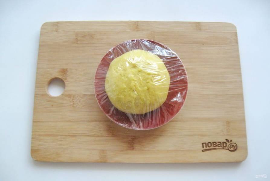 Накройте тесто пищевой пленкой и поставьте в холод на 1-2 часа.