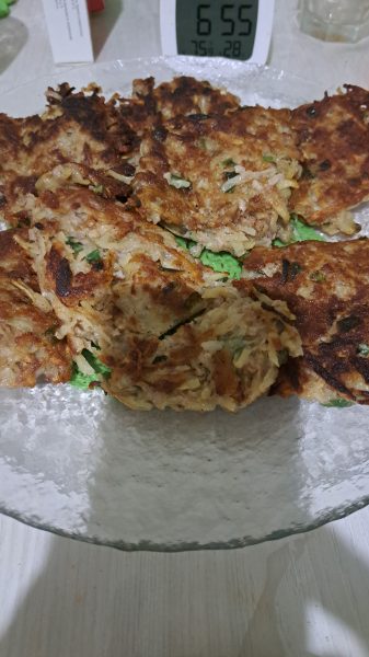 Снимите драники на бумажное полотенце, чтобы убрать лишний жир. Повторите с оставшейся картофельной массой. У меня получилось 18 драников.