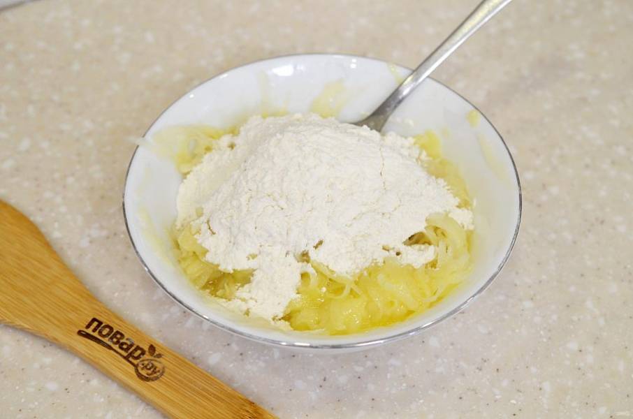 6. Добавьте яйцо, муку и хорошо перемешайте.