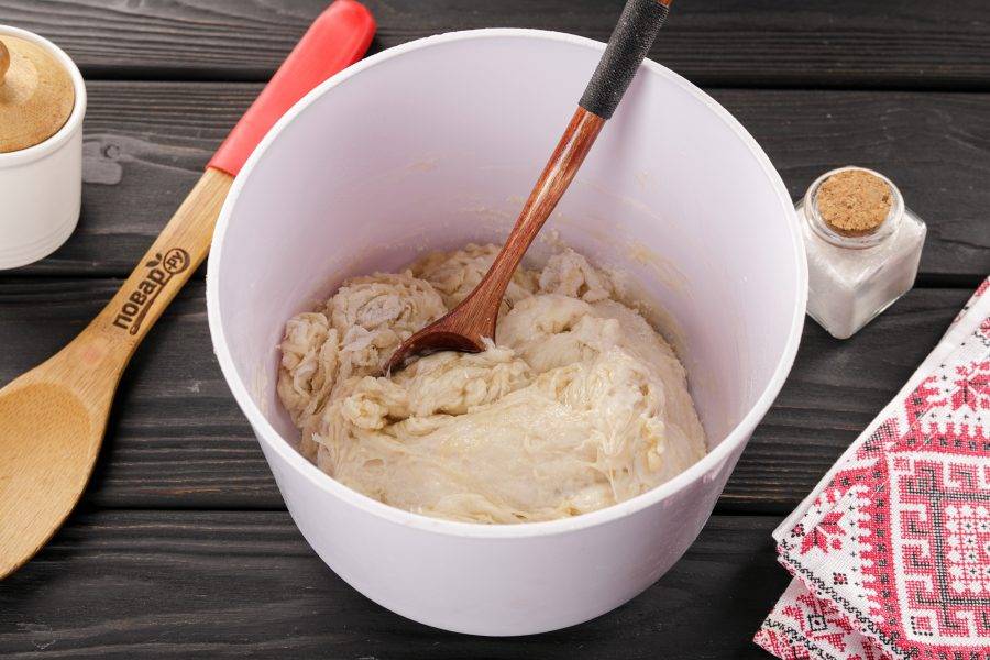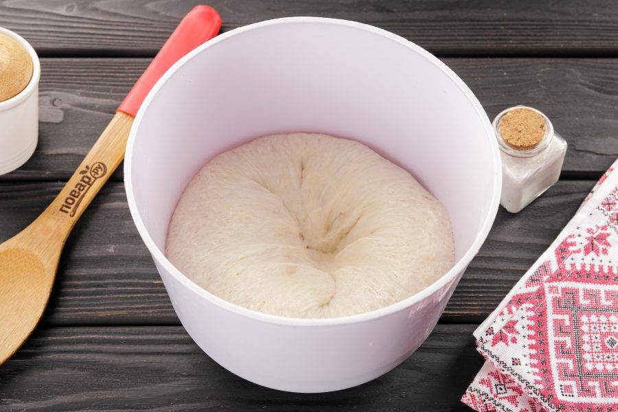 Накройте миску полотенцем и оставьте в тёплом месте для подъема, примерно на час.