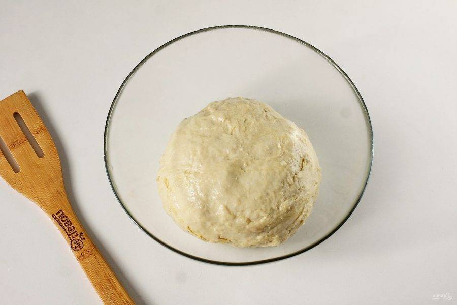 Все перемешайте, а затем руками замесите мягкое и эластичное тесто. Накройте миску пищевой пленкой и оставьте в теплом месте на 1 час.