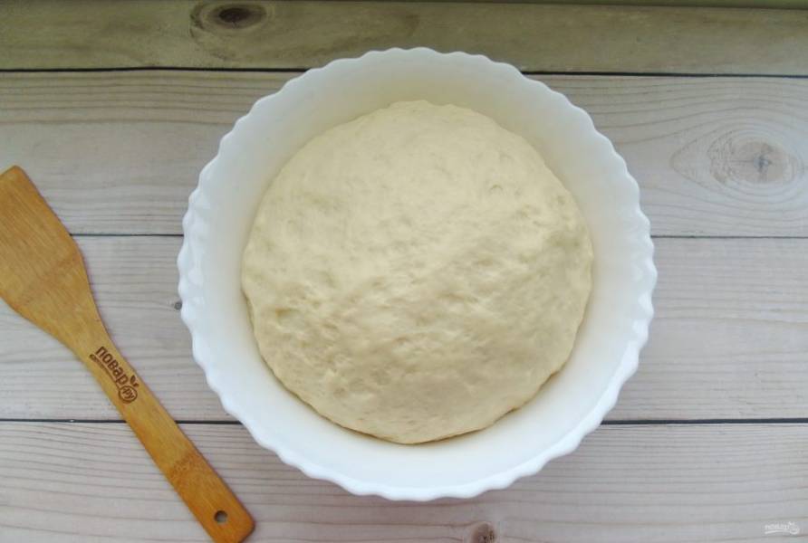 Замесите мягкое, эластичное, не липнущее к рукам тесто. Накройте его пищевой пленкой или полотенцем, поставьте в теплое место.