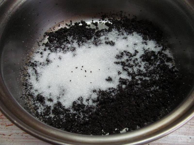 А пока тесто поднимается, приготовим маковую начинку. Залить мак водой, проварить его до выкипания воды, накрыть крышкой и дать остыть, затем измельчить блендером до белизны. Добавить сахар и перемешать.