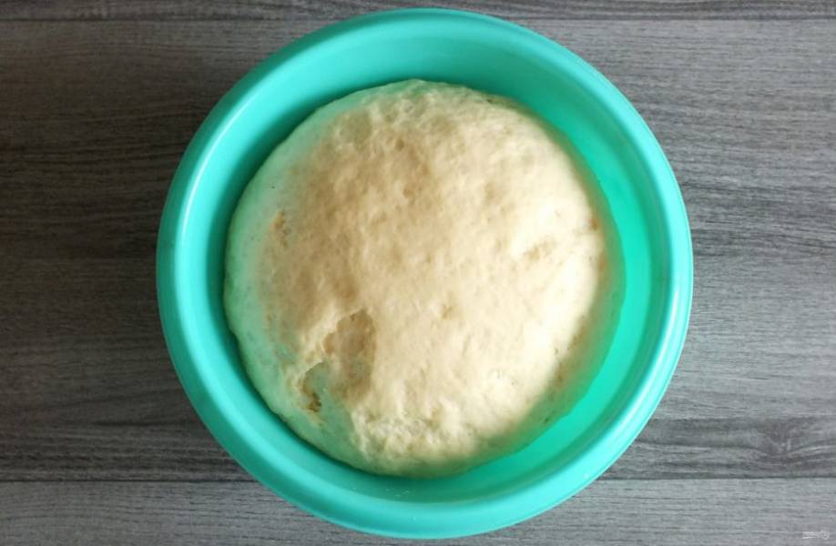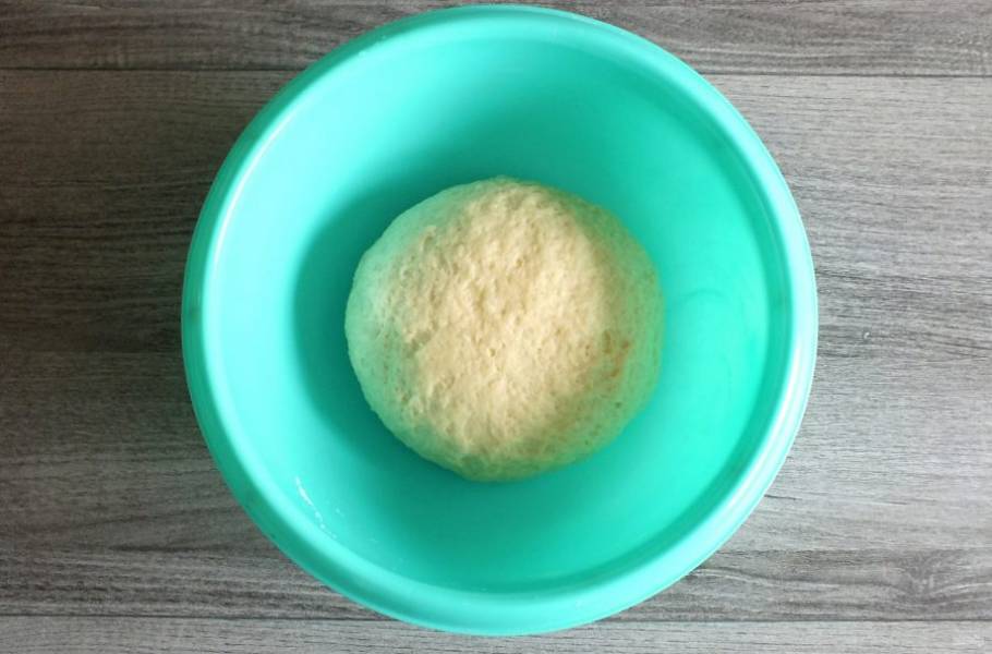Готовое тесто должно получиться мягким, послушным, не прилипающим к рукам. Округлите его, выложите в чашу, прикройте полотенцем и оставьте в теплом месте на 1 час для подъема.