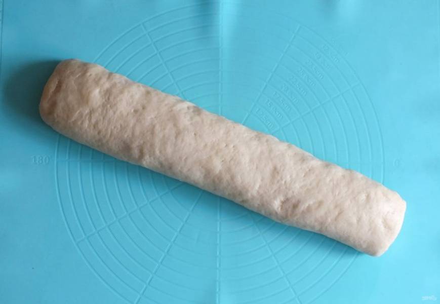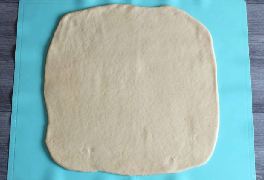 Раскатайте тесто в прямоугольник, толщиной 0,3 см.