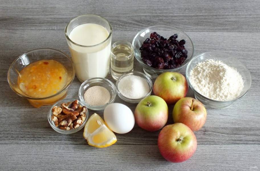 Предлагаю вашему вниманию настоящий именинный пирог. Пышный, румяный, с ароматной яблочной начинкой. Также в него входят изюм, орехи и лимонное варенье. Это настоящее праздничное угощение!