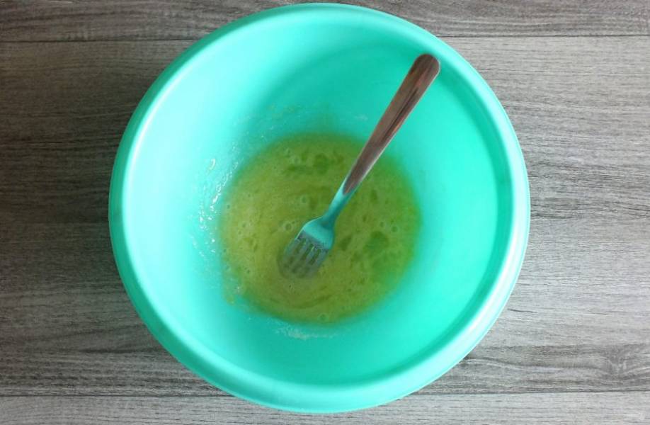 В чаше взбейте вилкой яйцо и оставшийся сахар.