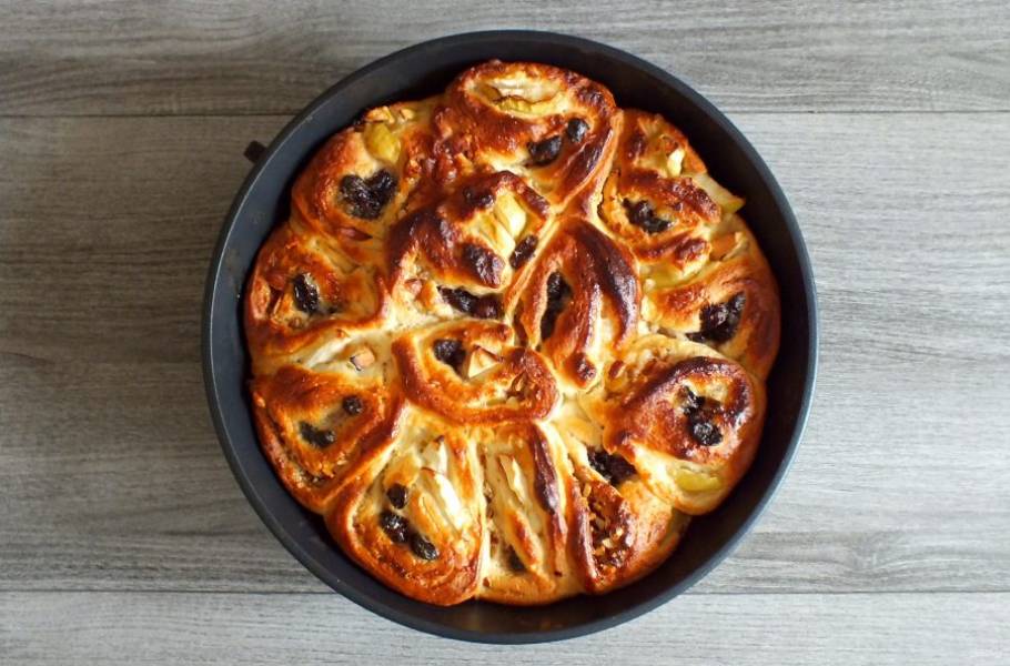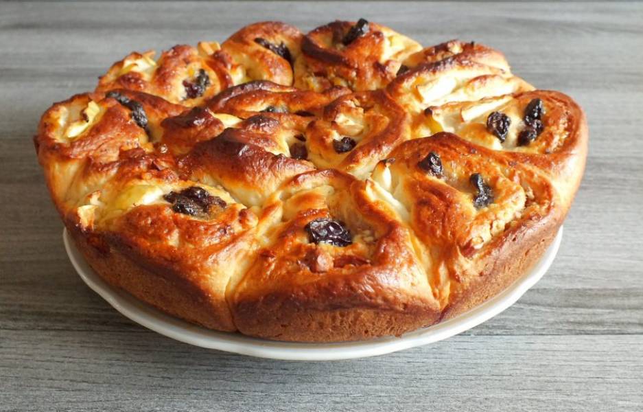 Видео рецепт "Дрожжевой пирог с яблоками и изюмом"