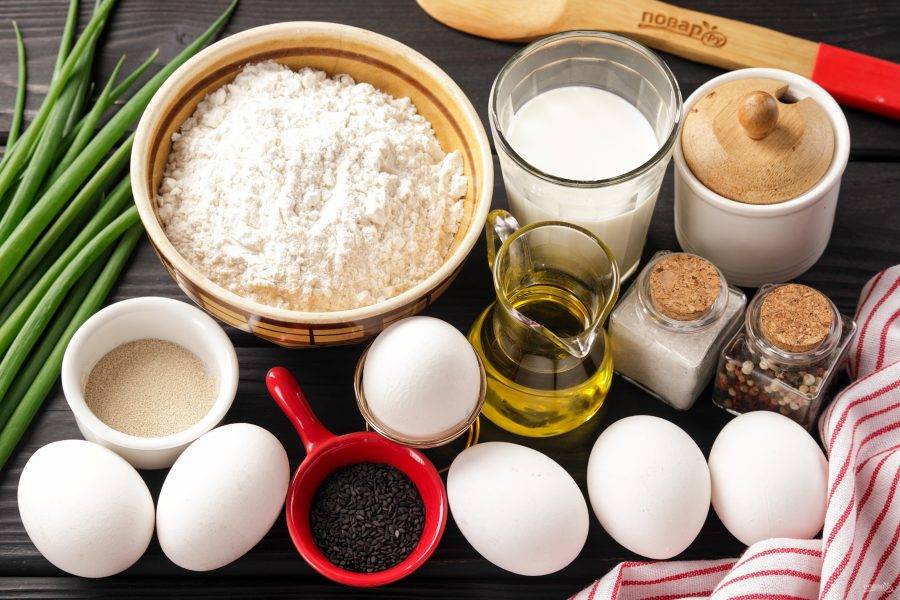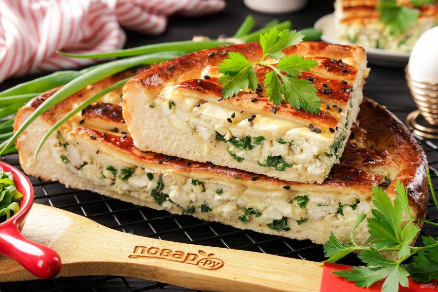 Дрожжевой пирог с яйцом в духовке готов. Приятного аппетита!