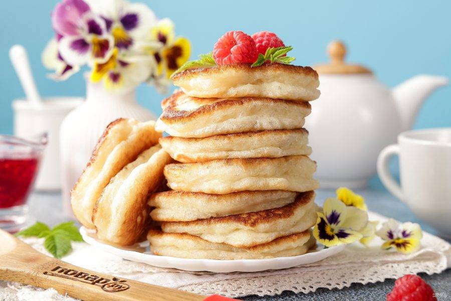 Дрожжевые оладушки на кефире готовы. Приятного аппетита!