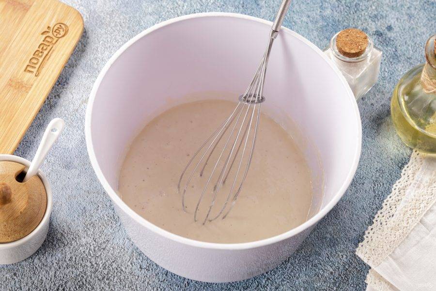 Перемешайте до состояния кашицы, накройте миску полотенцем и оставьте на 10-15 минут.