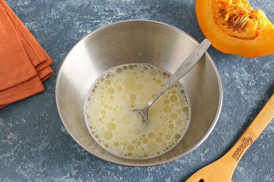 Взбейте яйцо с солью. Добавьте воду, растительное масло и взбейте все еще раз.