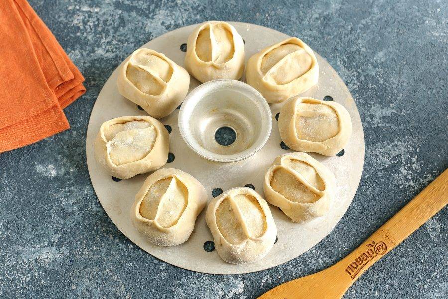 Выложите манты на смазанную маслом решетку мантоварки и готовьте на пору около 45 минут.