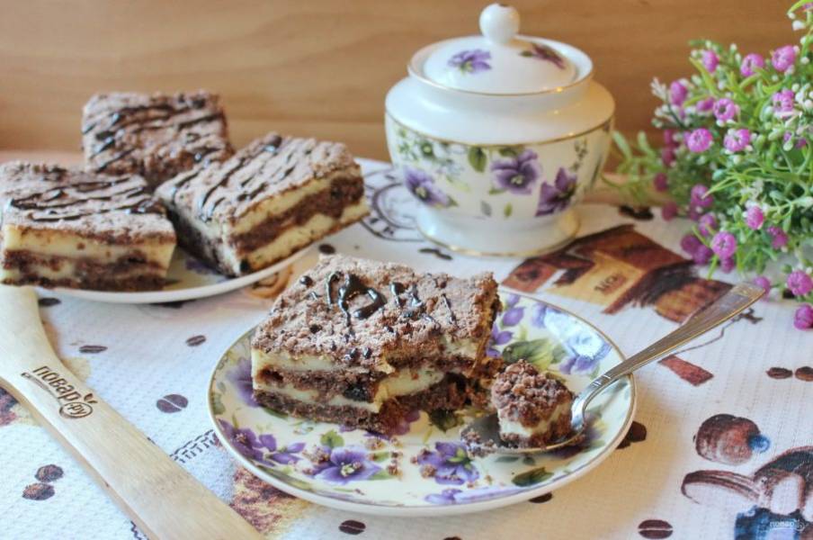 Предлагаю вашему вниманию отличный пирог из двух слоев — творожного суфле и шоколадной крошки. Пирог необыкновенно нежный и очень вкусный. Подойдет в будни к чаю, кофе и на праздничный стол.