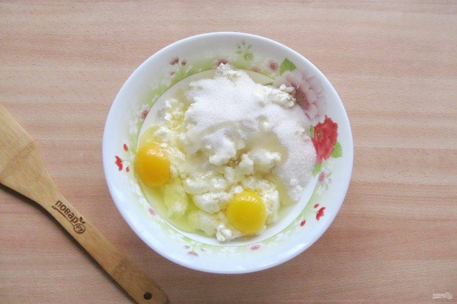 - Сахар 250 грамм 120 грамм — в творог, 130 грамм — в крошку
