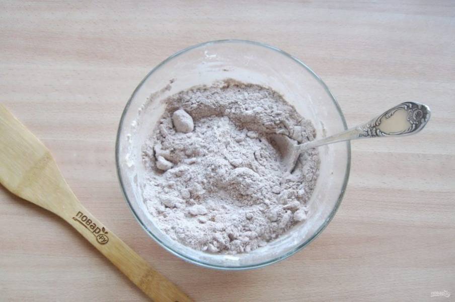 Добавьте соду, погашенную укусом и перемешайте эти ингредиенты в крошку.