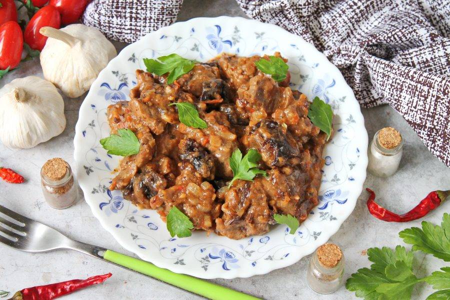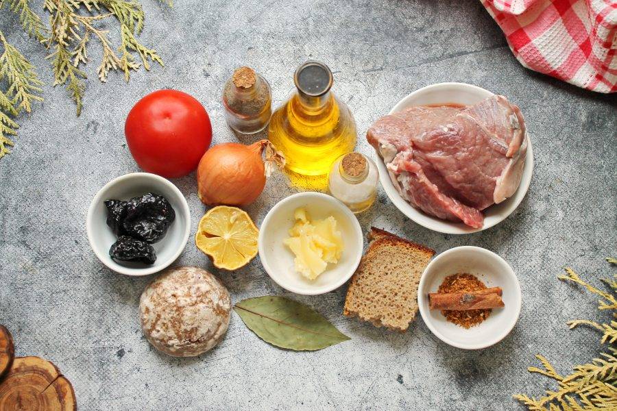 Предлагаю приготовить на обед вкусное, очень ароматное мясо с густым соусом. Блюдо получается кисло-сладким за счет чернослива, специй и пряников, хлеб делает его пикантным. Берите рецепт на заметку!