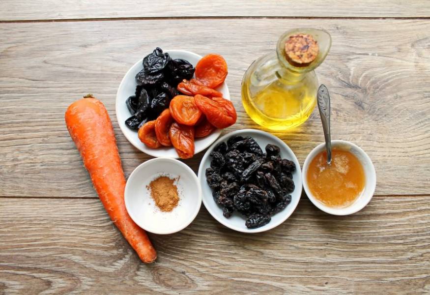 Подготовьте все необходимые ингредиенты для приготовления еврейского цимеса.