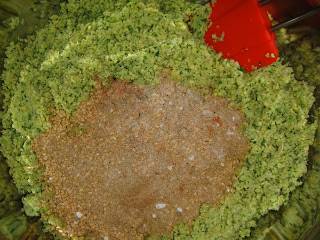 Переложите измельченный с зеленью нут в миску, добавьте кунжут и специи.