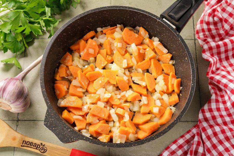 Обжарьте овощи до мягкости.
