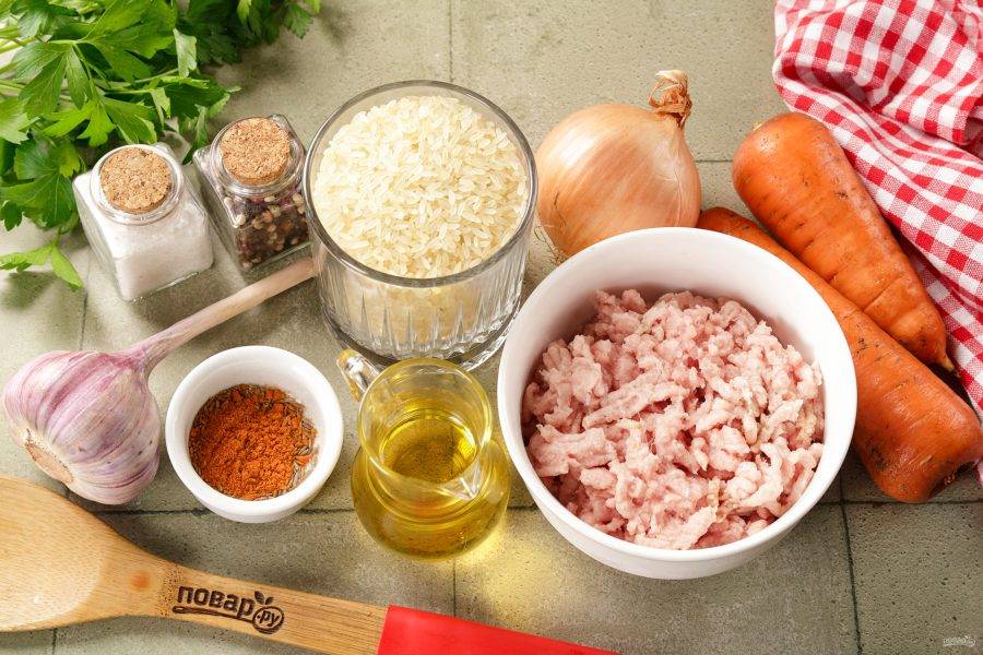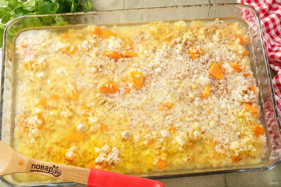 Фарш с рисом в духовке
