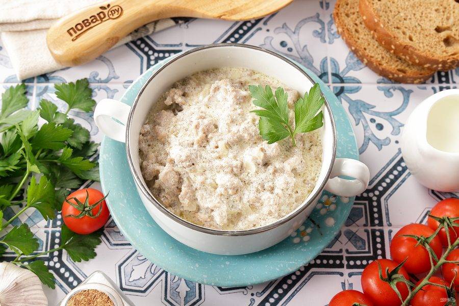 Приготовить фарш со сливками можно буквально на скорую руку. Рецепт максимально прост и справится даже начинающая хозяйка. Подавайте с гарниром на обед или ужин.