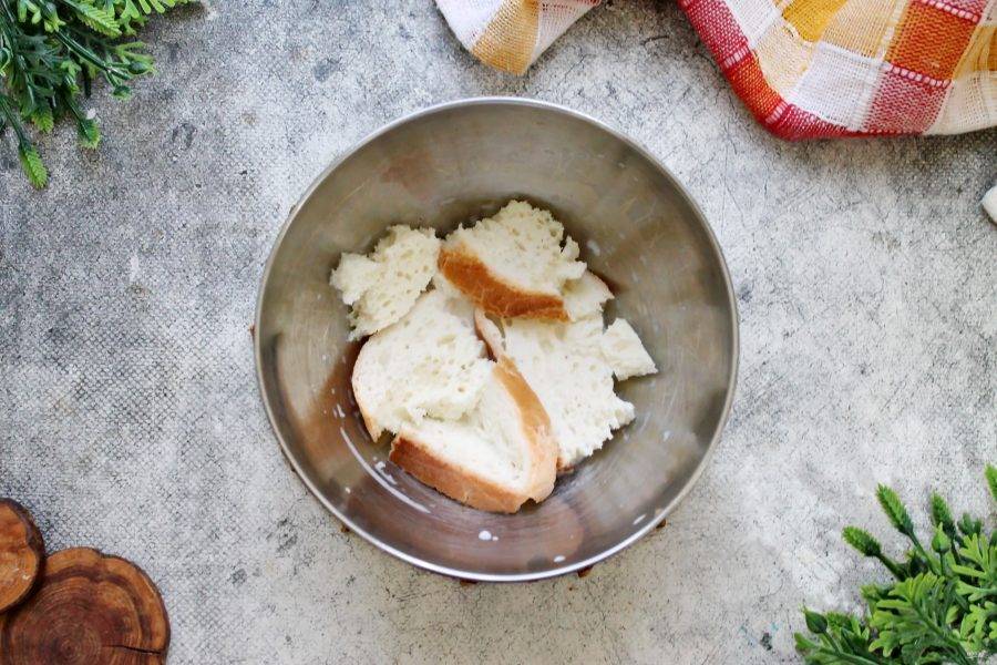 Булку поломайте на куски, залейте молоком и дайте постоять 5 минут.