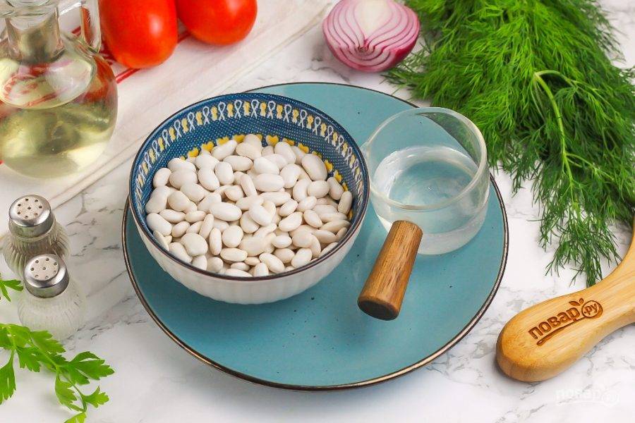 Подготовьте указанные продукты. Приобретите фасоль по своему вкусу: белую, бордовую, красочную и т.д. По желанию можно также добавить в процессе варки специи и пряности к ней.