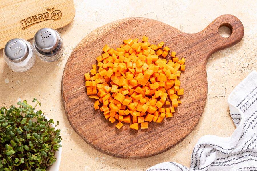 Морковь очистите от кожуры, нарежьте кубиками.