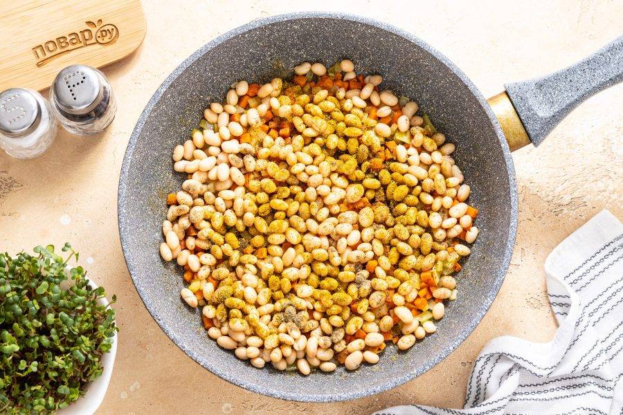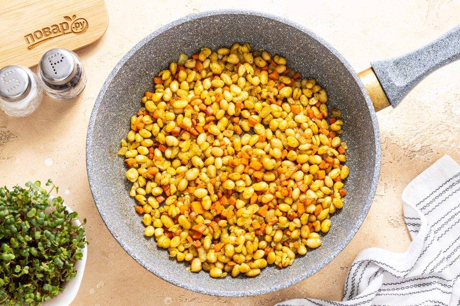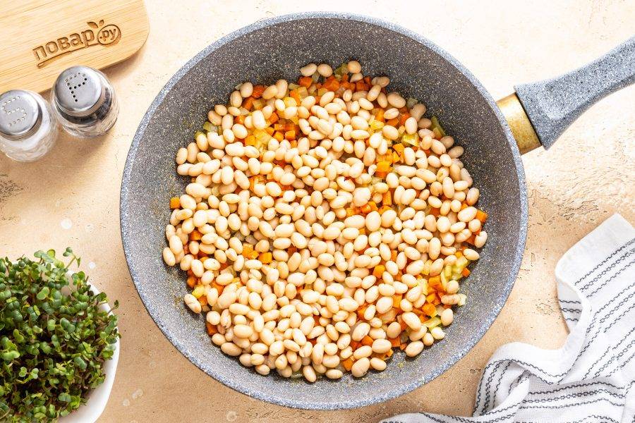Выложите в сковороду фасоль.