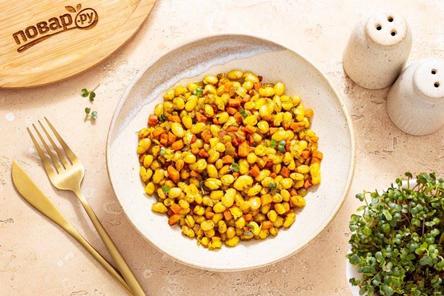 Фасоль с луком готова, приятного вам аппетита!