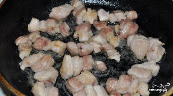Перед обжаркой нужно мясо слегка обвалять в муке и жарить не все целиком, а по порциям, чтобы оно готовилось равномерно и эффективно. Обжаривайте до появления легкой корочки.