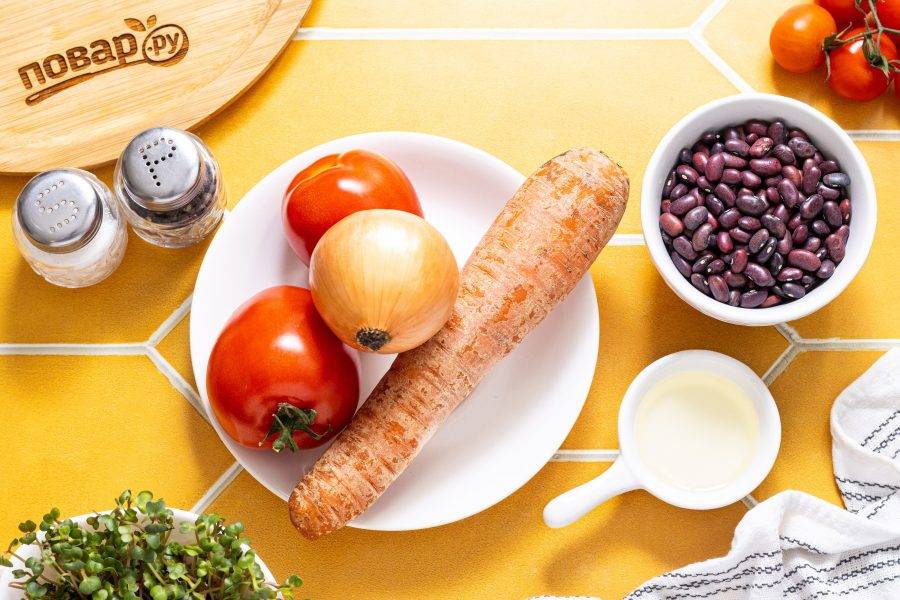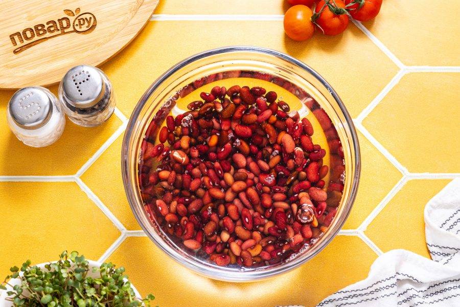 Фасоль предварительно замочите в воде на пару часов, можно оставить на ночь.