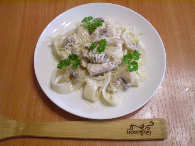 Фетучини с курицей и грибами