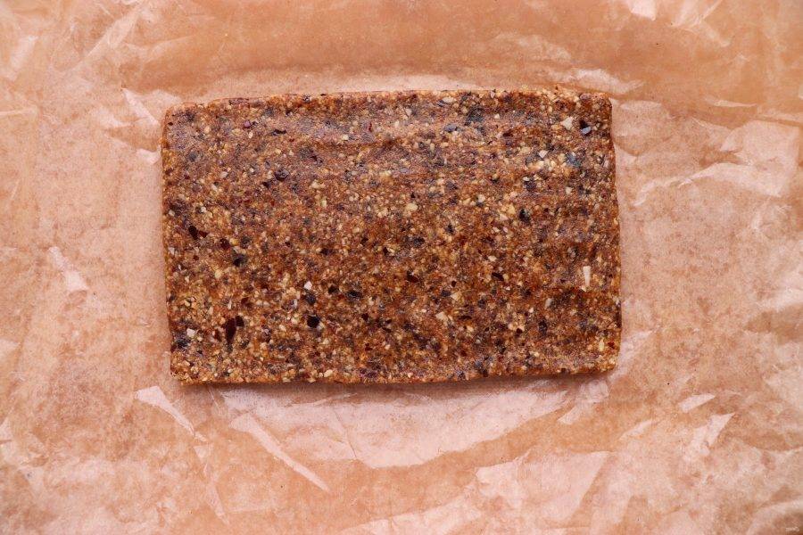 Полученную массу выложите на смазанную растительным маслом бумагу для выпечки и разровняйте. Уберите массу в холодильник на 2 часа.