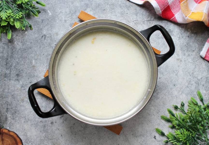 Влейте в кастрюлю сливки, перемешайте и доведите до кипения.