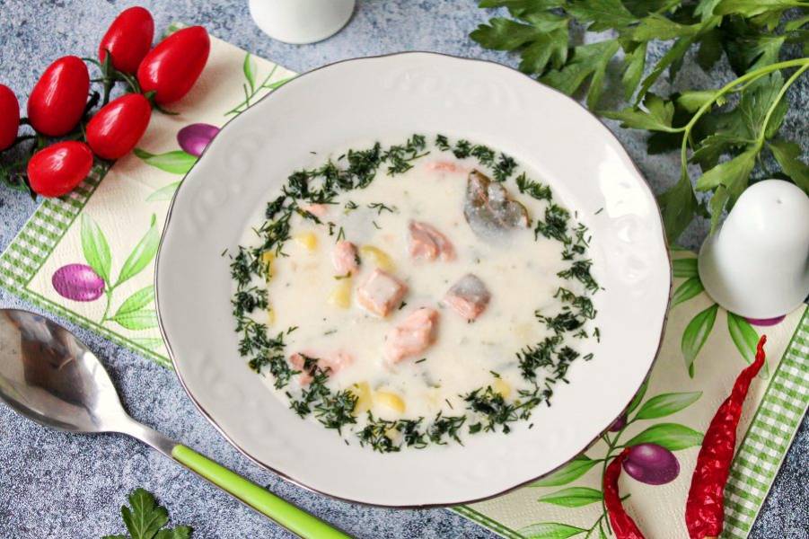Финский суп из лосося со сливками готов. Приятного аппетита!