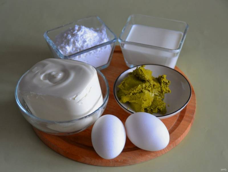 Пока выпекается чизкейк, подготовьте ингредиенты для приготовления заварного фисташкового крема.