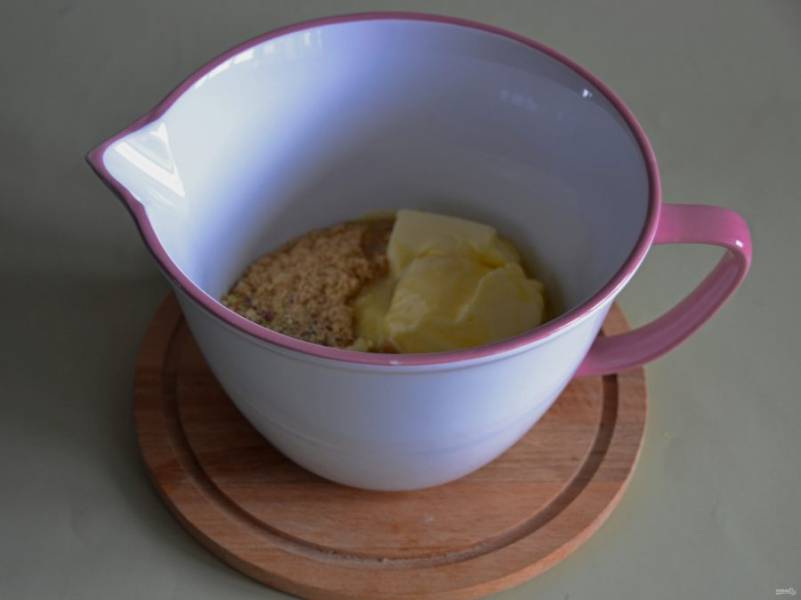 Добавьте к песочной крошке мягкое сливочное масло, смешайте руками, крошка должна стать увлажненной и не рассыпаться в руках.