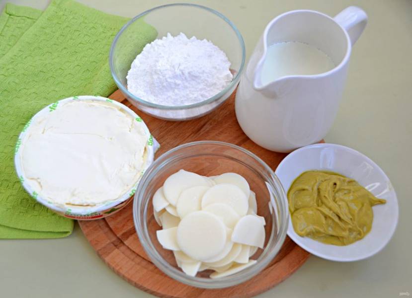 Взбейте сыр маскарпоне с сахарной пудрой.