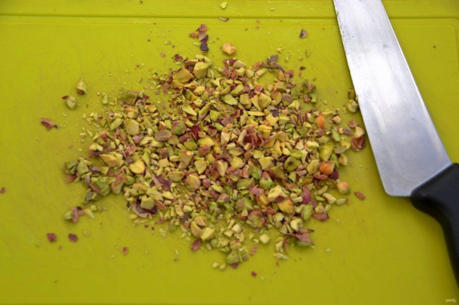 Измельчите ножом 20 грамм фисташек, отложите на время в сторону.