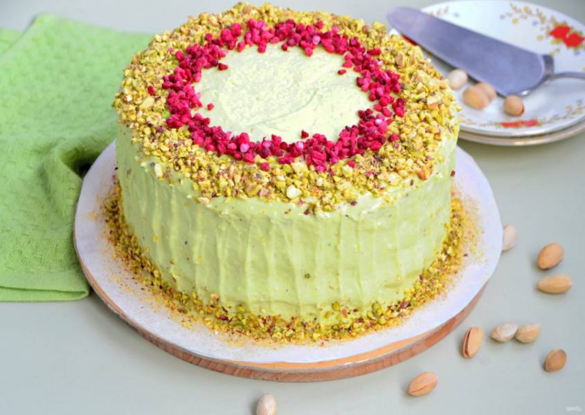 Фисташки — это любовь! Все что приготовлено с этими вкусными орехами вызывает непреодолимое желание отведать кусочек. Поэтому, фисташковый торт — это беспроигрышный вариант для праздничного стола!