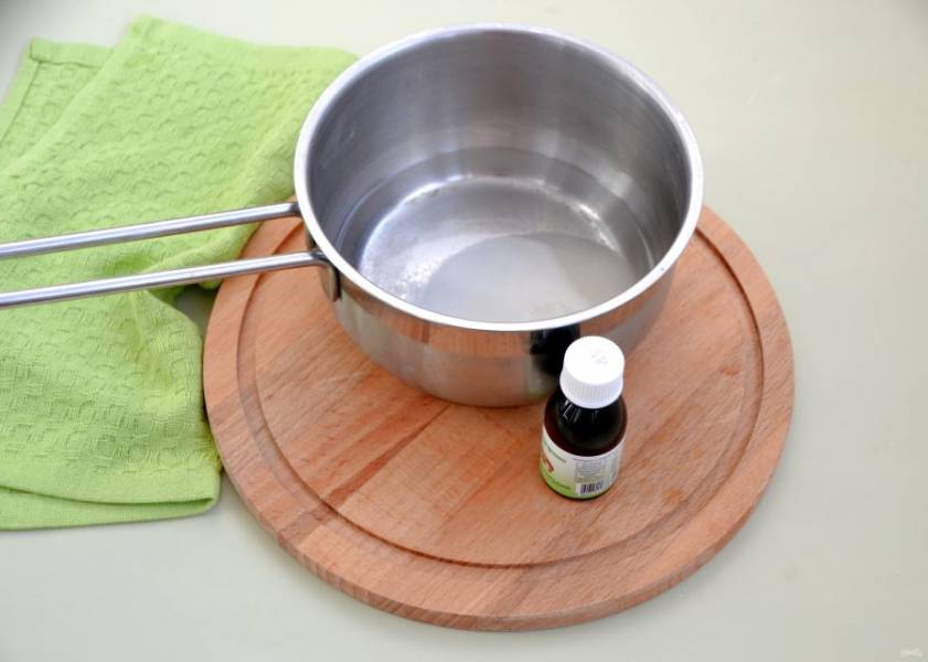Приготовьте сироп для пропитки коржей, для этого возьмите 100 грамм воды, 50 грамм сахара, доведите до кипения и до растворения сахара. При желании можно добавить несколько капель экстракта миндаля. Можно вместо этого добавить 1 ч.л. коньяка или ничего не добавлять.