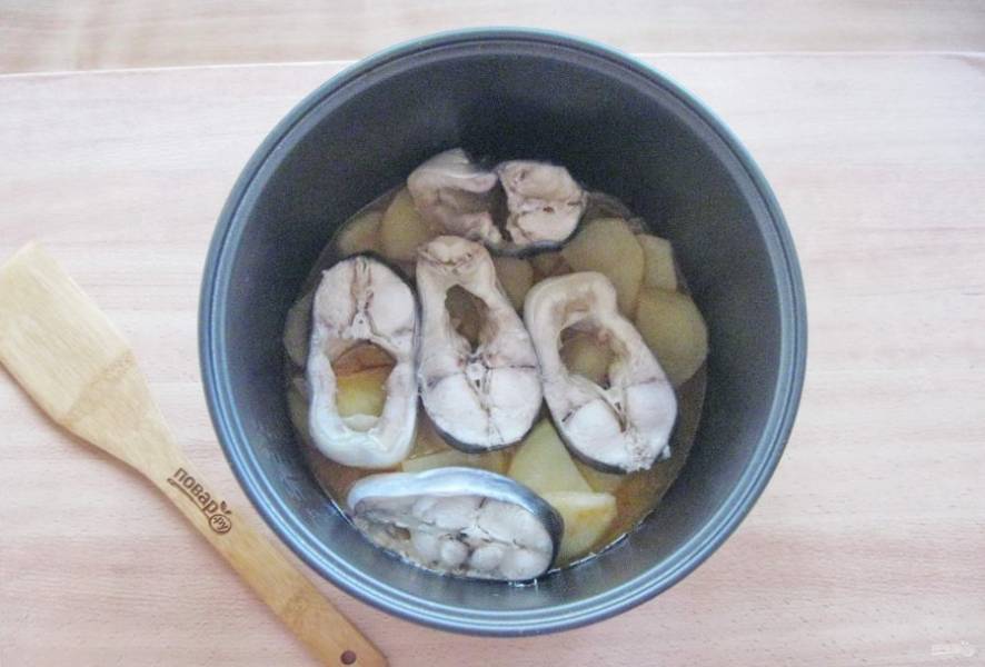 Форель с картофелем в мультиварке готова. Подавайте к столу в горячем виде.