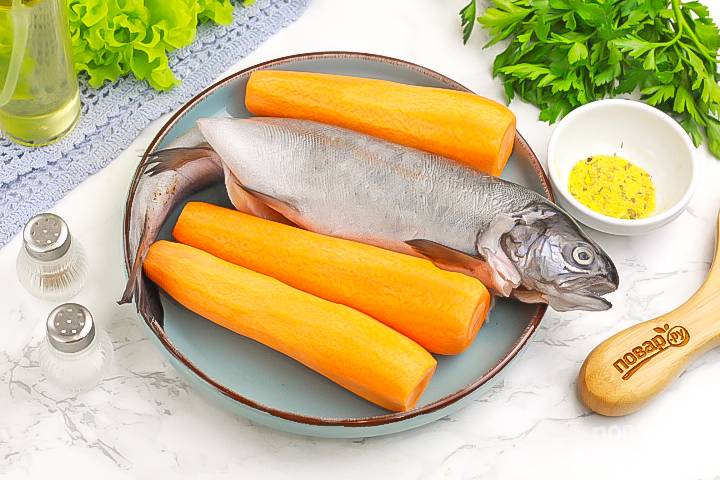 Подготовьте указанные продукты. Форель очистите от чешуи, вспорите брюшко и удалите внутренности, можно — и жабры. Промойте тщательно внутри и снаружи. Очистите морковь и также промойте. По желанию можно добавить и лук, чеснок.